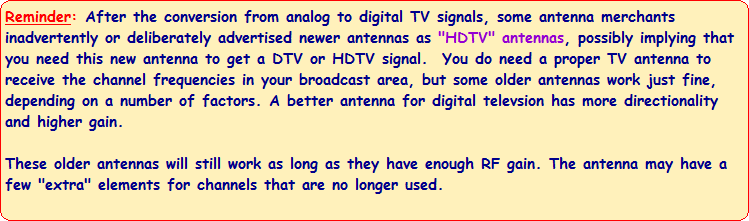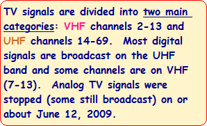 Looking for more information about: Free TV, OTA Broadcast, Internet TV, Cable TV, Satellite TV, TV Signals, Digital TV, HDTV, TV Antennas, TV Antenna Rotors, TV Antenna Amplifiers? Check out the next page>>