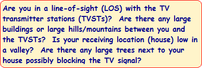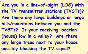 of your area TV stations transmitters (TVST), the terrain or obstacles