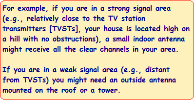 A specific antenna may be indicated depending on whether you are in a weak, moderate or strong signal area.