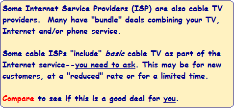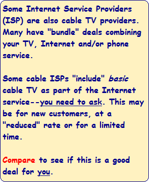 ? Yes--and some of it is FREE--and of course, some you have to pay to receive. Some Internet providers offer a deal that enables you to watch TV programs through their service on your computer for an additional fee. If you are reading this article about FREE OTA TV, you might be looking for a way to supplement your over-the-air channels with a few non-broadcast channels and/or other media, e.g. TNT, TBS, FX, cables news, videos--for free, of course!