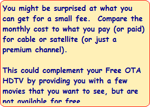 supplying many FREE movies, clips and other videos. Some just use YouTube videos and other FREE TV and video websites to supplement their FREE OTA HDTV.