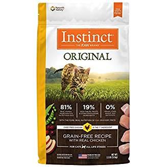 . (see AAFCO) The first few ingredients listed on the label are the important ones to consider when buying cat food. Look for more meat (chicken, turkey, lamb, or beef--not just "meat") and less grain in the top few ingredients. Many low cost grocery store dry cat food brands use carbohydrates as fillers: cornmeal, ground corn, corn gluten, maize,...