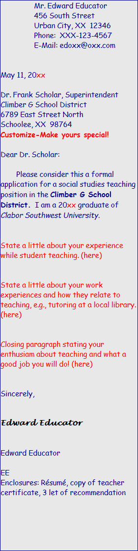 Always include a cover letter even if the job source advertisement does not specify that one is needed. Your cover letter should be customized for each potential place of employment, although you could use the same basic pattern if it is for the same job title.