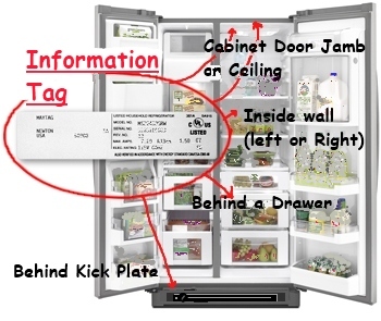 Possible brand/model number location on refrigerators