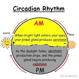 Melatonin is a hormone that has many purposes including being part of the system that regulates the circadian rhythm.   (the precursor to melatonin) is a neurotransmitter that regulates mood, appetite and cognitive functions.  Serotonin and melatonin have opposite functions with serotonin stimulating us during the day and melatonin inducing sleep at night.