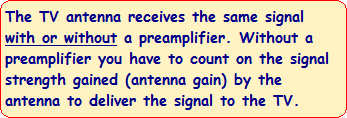 Use a distribution amplifier (not a preamp) in strong signal areas when you want to divide the signal to several TVs in your house.