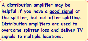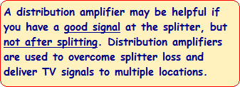 Sometimes when multiple signal splitters are installed, you may need both a preamplifier and a distribution amplifier depending on what it takes to maintain a good signal.